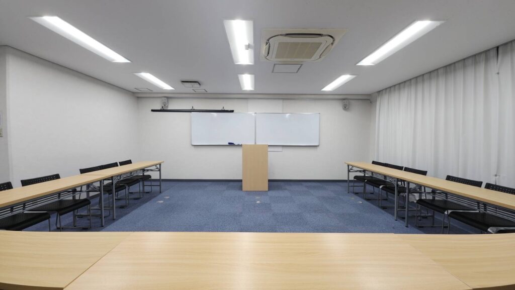 50名ほどで開催するミーティングや研修に最適な会議室。